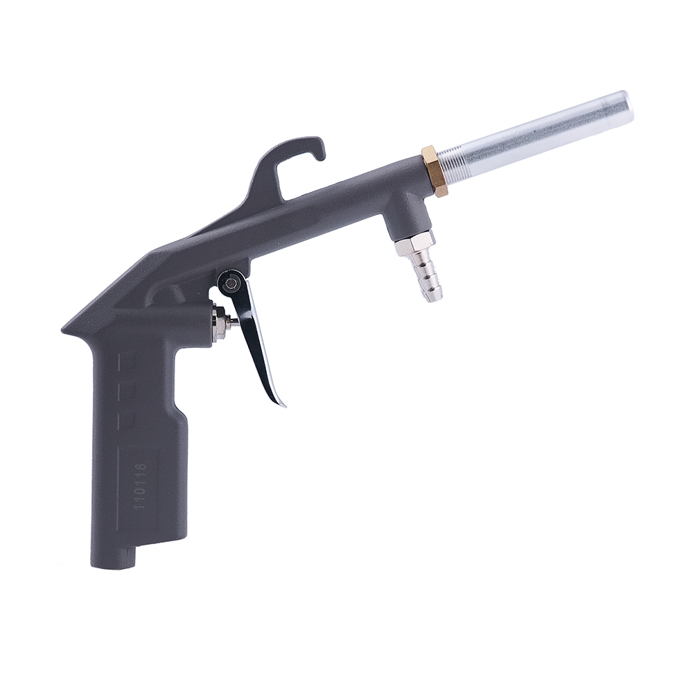 Пневмопистолет пескоструйный с шлангом. Предназначен для очистки поверхностей от грязи и ржавчины, а также снятия старых покрытий струей песка. Оснащен выносным шлангом, что позволяет использовать емкости с любым объемом абразивного вещества на значительном расстоянии от точки подключения.